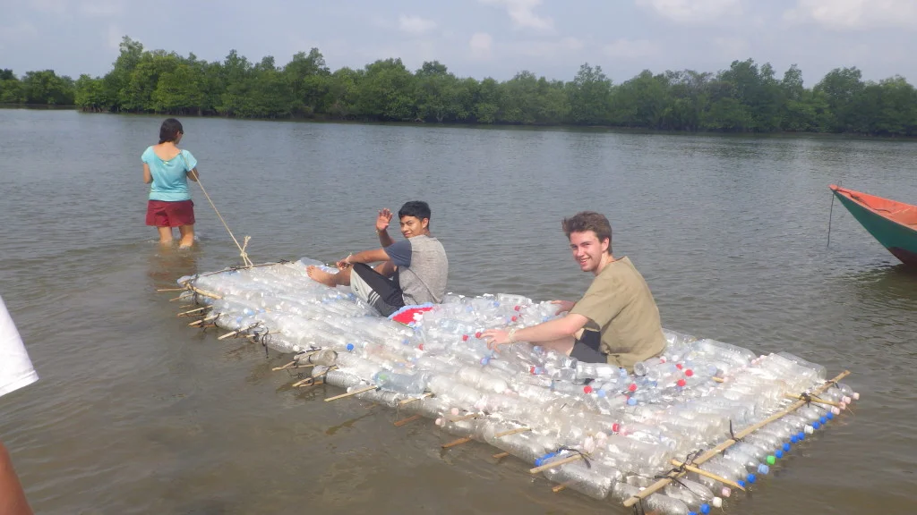 Our main project for the week was to build a boat out of recycled plastic bottles. Our goal was to create a functional boat that would inspire the community to make use of the plastic waste. Cambodia definitely has a littering and pollution issue, so we felt that making this boat was very important. We quickly jumped into the project and worked really hard to construct a functioning boat. In the evening, we took a long boat ride to the Gulf of Thailand where we swam at sunset. It was definitely a once in a lifetime opportunity.