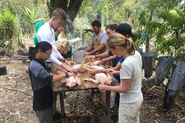 While most of our time here was spent working hard and having fun, some of us went through the difficult but perspective changing experience of harvesting (killing) chickens guided by Shad. We also had fun in the water when we went kayaking on the lake and went on a short hike to a nearby waterfall. Our stay here was completed with a fun karaoke night where we all got to perform our favorite songs.
